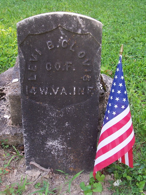 Husband: Levi B. Clovis Born: Jul- -1833 in Pennsylvania 1 Died: Mar-16-1910 in Wood Co, WV 2 Buried: in Mathews Cemetery, South Parkersburg, Wood Co, WV 3 Resided: 1907 in Parkersburg, Wood Co, WV 4 Census: 1900 in Tygart District, Wood Co, WV Resided: 1890 in Oxford, Doddridge Co, WV 5 Census: 1880 in Southwest District, Doddridge Co, WV Census: 1870 in Clay District, Ritchie Co, WV (see note 1) Census: 1860 in Pleasants Co, (W)VA Census: 1850 in Greene Co, PA Occupation: farmer 6,7 Occupation: 1860 miller 8 Military: Aug- 9-1862 - May-24-1865 Pvt, Co F, 14th W.Va. Inf, Civil War 5,9,10 Father: Mother: