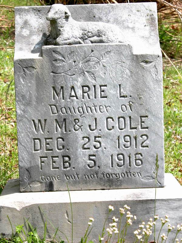 M Child 2: Delbert Worthy Cole Born: Jul-11-1910 in Gilmer Co, WV 4,7,8 Died: Dec-29-1978 4 Buried: in Weston Masonic Cemetery, Weston, Lewis Co, WV 9 Resided: in New Milton, Doddridge Co, WV 10 Census: 1940 in Troy District, Gilmer Co, WV Resided: 1932 in Doddridge Co, WV 8 Census: 1930 in Cove District, Doddridge Co, WV Wife: Mavis Faye Garrett b. Jul- 3-1915 d. Nov-12-2002 Married: Sep- 1-1932 in Lewis Co, WV 8F Child 3: Marie Louise Cole Born: Dec-25-1912 1,11 Died: Feb- 5-1916 1,11 Buried: in Point Pleasant Baptist Church Cemetery, Fallen Timber, Doddridge Co, WV 1,11 Cause of death: serious burn followed by pneumonia fever 11