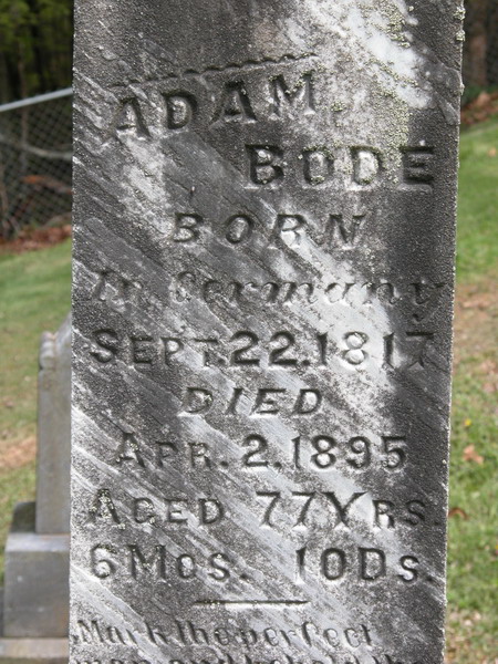 Jul-28-2018Husband: Adam Bode Born: Sep-22-1817 in Germany 1 Died: Apr- 2-1895 1 Buried: in Grove Baptist Church Cemetery, Grove-Summers Rd (CR 19), Doddridge Co, WV 1 Father: Mother: