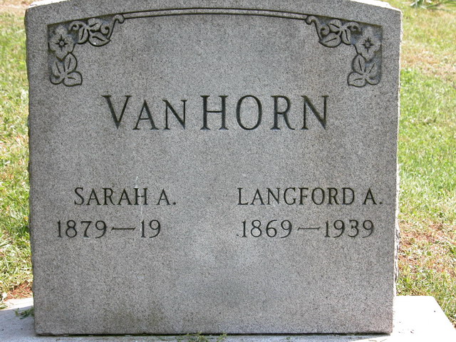 Jul-28-2018Husband: Langford Allen VanHorn Also known as: L. A. VanHorn 1 Born: Jul-14-1869 in Doddridge Co, WV 2,3,1 (see note 1) Died: Jan-19-1939 in Blandville, Doddridge Co, WV 2,3 Buried: in Grove Baptist Church Cemetery, Grove-Summers Rd (CR 19), Doddridge Co, WV 4,2 Census: 1920, 1930 in Southwest District, Doddridge Co, WV Census: 1910 in Sour Lake, Hardin Co, TX Census: 1900 in Cove District, Doddridge Co, WV Census: 1870 in Southwest District, Doddridge Co, WV Occupation: farmer 2 Occupation: 1900, 1910 carpenter 5,6 Father: Elhanan Vanhorn (1829 - 1880) Mother: Margaret Wilson (1835 - )