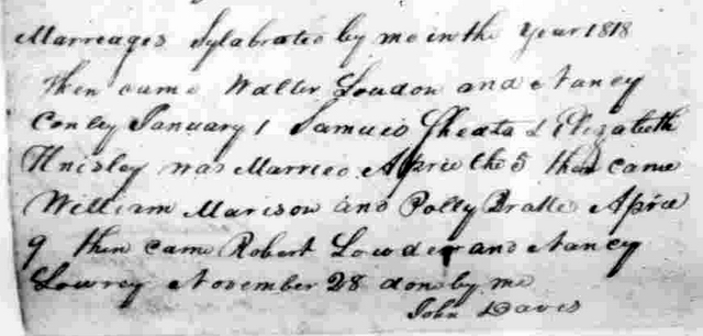 Wife: Nancy Lowrey 1 Married: Nov-28-1818 in Harrison Co, (W)VA 2,3