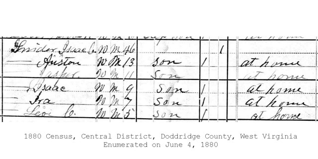 M Child 7: Levi C. Snider Born: ca 1875 8 Census: 1880 in Central District, Doddridge Co, WV