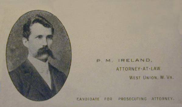 Jul-28-2018Husband: Paul Monroe Ireland Born: 1872 in Ritchie Co, WV 1,2 Died: Dec-29-1963 in Doddridge Co, WV 3,2 Buried: in Blockhouse Hill Cemetery (IOOF section), West Union, Doddridge Co, WV 4 Resided: in West Union, Doddridge Co, WV 5,6 Resided: 1902 in Doddridge Co, WV 1 Census: 1910, 1920, 1930 in West Union, Doddridge Co, WV Occupation: attorney 5 Occupation: 1916 West Union Town Recorder 7 Father: George Monroe Ireland (1839 - 1920) Mother: Mary Ellen Law (1841 - 1918) Notes
