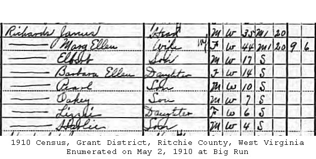 Jul-28-2018Husband: James Richards Born: ca 1875 1 Census: 1910 in Grant District, Ritchie Co, WV Occupation: farmer 1 Father: Mother: