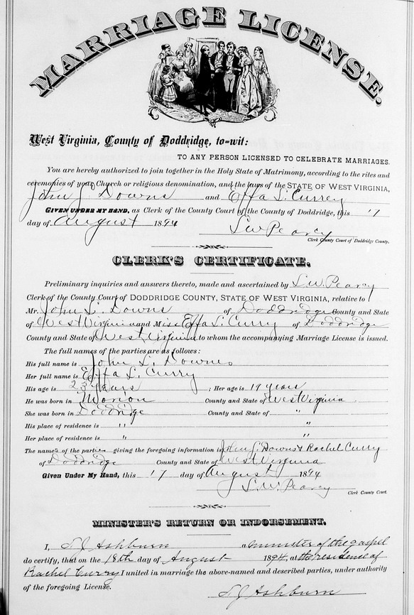 Wife: Effa Landora Curry Also known as: Effie Currey 4 Married: Aug-18-1894 in Doddridge Co, WV 2