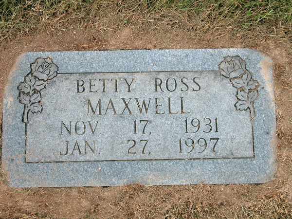 Father: Clarence Cecil Maxwell (1912 - ) Mother: Dollie Charlotte Poling (1916 - )Wife: Betty JoAnn Ross Born: Nov-17-1931 at Greenwood, Doddridge Co, WV 1,2 Died: Jan-27-1997 in Clarksburg, Harrison Co, WV 3 Buried: in Masonic Memorial Park Cemetery, Crystal Lake (West Union), WV 2 Resided: in Stonewood, Harrison Co, WV Resided: 1957 in Lumberport, Harrison Co, WV 1 Father: Clyde Ross (1899 - 1955) Mother: Ella Gae Keister (1899 - 1958)