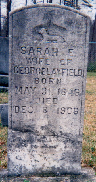 Sources: (1) Headstone - Date calculated from age at death. (2) Harrison County Marriage Records, Clarksburg, WV. (3) Headstone. (4) Findagrave.com. (5) Ritchie County Historical Society (David M. Scott, Editor), Ritchie County, West Virginia Cemeteries through 1993, McClain Printing Co, Parsons, WV, 1995. (6) Harrison County Marriage Records, Clarksburg, WV, Identified as George Layfield, age 22y 10m, b. & res. in Ritchie Co, son of John & Elizabeth Layfield, occupation farmer; and Sarah Elizabeth Macalmar (sic), age 19y 6m, b. Hardy Co, res. Harrison Co, dau of Philip & Mary Ann Macalmar. Married Oct 9 1864 in Harrison County. MR p. 34. (7) Ritchie County WV Marriages 1843-1915, Wes Cochran, 2515 10th Ave, Parkersburg WV 26101 (July 1985) (8) Headstone (year only) (9) 1920 Census, Ritchie County, WV (Grant District). (10) Ritchie County WV Marriages 1843-1915, Wes Cochran, 2515 10th Ave, Parkersburg WV 26101 (July 1985), Identified as Grant Layfield, widowed, 43, of Ritchie Co; and Addie May Tibbs, widowed, 39, of Ritchie Co. Married Jun 1 1911.Name Index