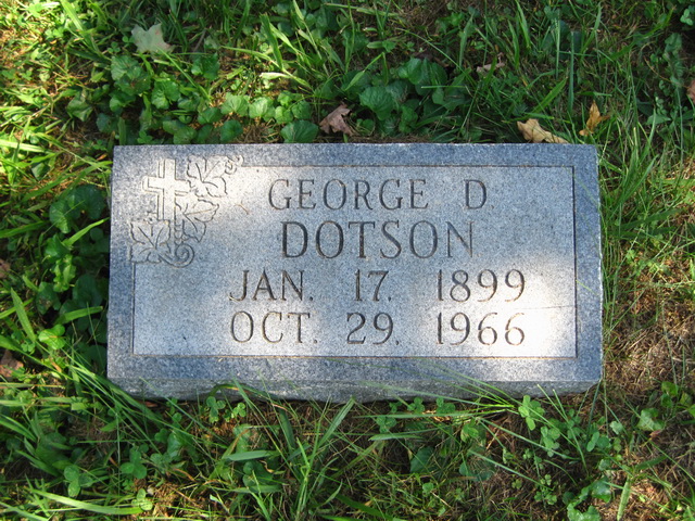 Jul-28-2018Husband: George Dewey Dotson Born: Jan-17-1899 in Doddridge Co, WV 1,2 Died: Oct-29-1966 1 Buried: in Randolph Cemetery, Rt 18 South, West Union, WV Census: 1900, 1910, 1930 in West Union District, Doddridge Co, WV (see note 1) Occupation: barber 3,4 Military: Pfc, U.S. Army, World War II 5 Father: Draper Camden Dotson (1854 - 1934) Mother: Mary Frances "Mollie" Davis (1857 - 1933) Notes