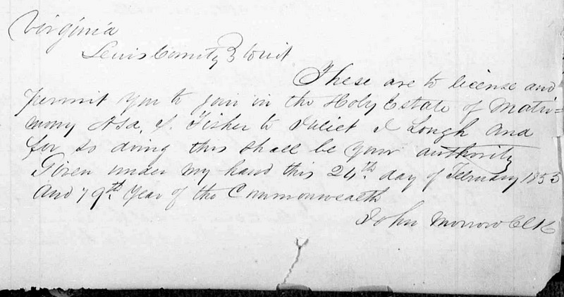 Wife: Juliet J. Lough 10 Also known as: Juliet J. Lowe 11 Married: Feb- -1855 in Lewis Co, (W)VA 12