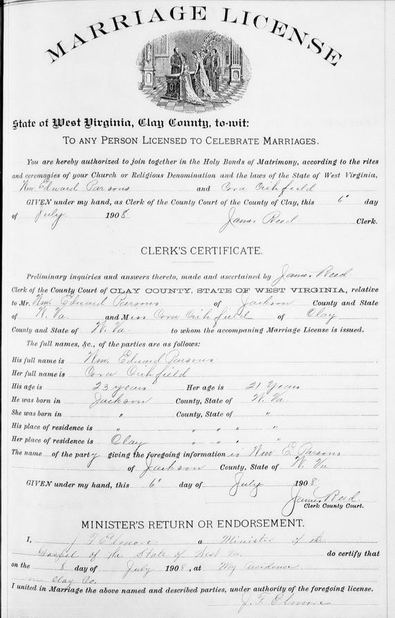 Sources: (1) Clay County Marriage Records, Clay, WV. (2) 1900 Census, Clay County, WV.Name Index