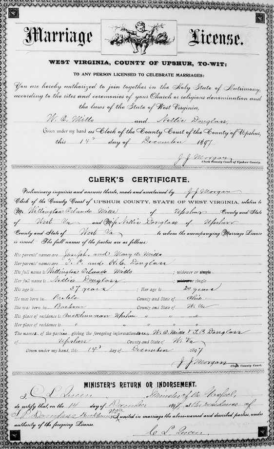 Wife: Nellie Flint Douglass Married: Dec-14-1897 in Buckhannon, Upshur Co, WV 1