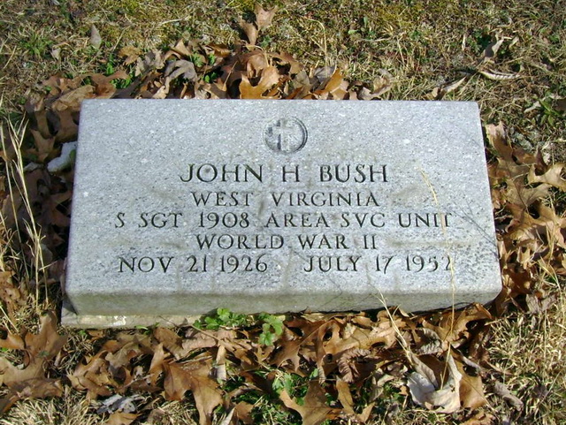 Jul-28-2018Husband: John Hamilton Bush Born: Nov-21-1926 in Ritchie Co, WV 1,2,3 Died: Jul-17-1952 in Alameda Co, CA 2 (see note 1) Buried: in South Fork Baptist Church Cemetery, Oxford, Doddridge Co, WV 1,4,5 Resided: in Yuba City, Sutter Co, CA 1 Census: 1930, 1940 in Union District, Ritchie Co, WV Military: S/Sgt, 1908 Area Svc Unit, World War II 6 Father: Clarence Lafayette Bush (1891 - 1949) Mother: Nellie M. Pierce (1900 - 1984)