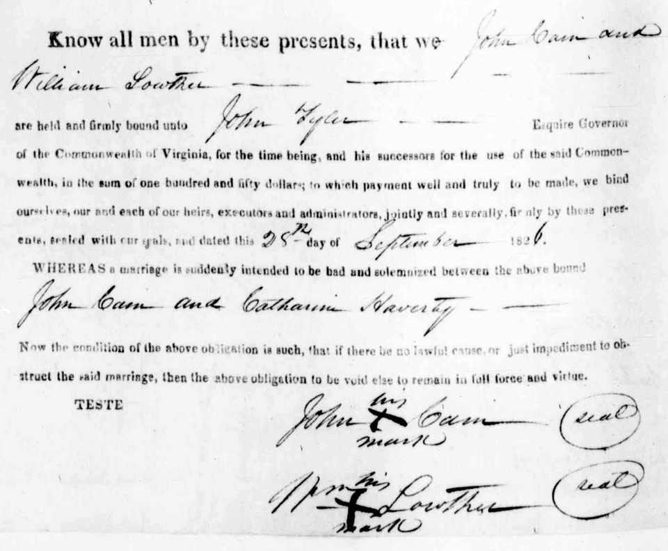 Wife: Catharine Haverty 3 Marriage Bond: Sep-28-1826 in Harrison Co, (W)VA 4 Married: Oct-28-1826 in Harrison Co, (W)VA 5 Born: ca 1793 1 Census: 1850, 1860 in Ritchie Co, (W)VA Father: Mother: Notes