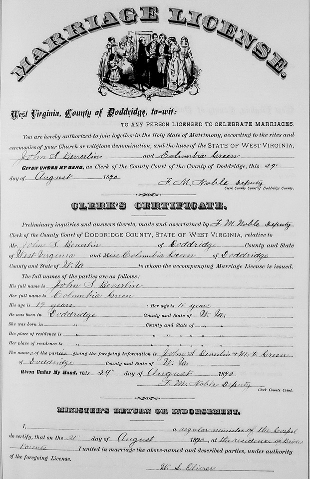 Wife: Columbia Ann Green 8 Also known as: Lum Green 9 Married: Aug-31-1890 in Doddridge Co, WV 10