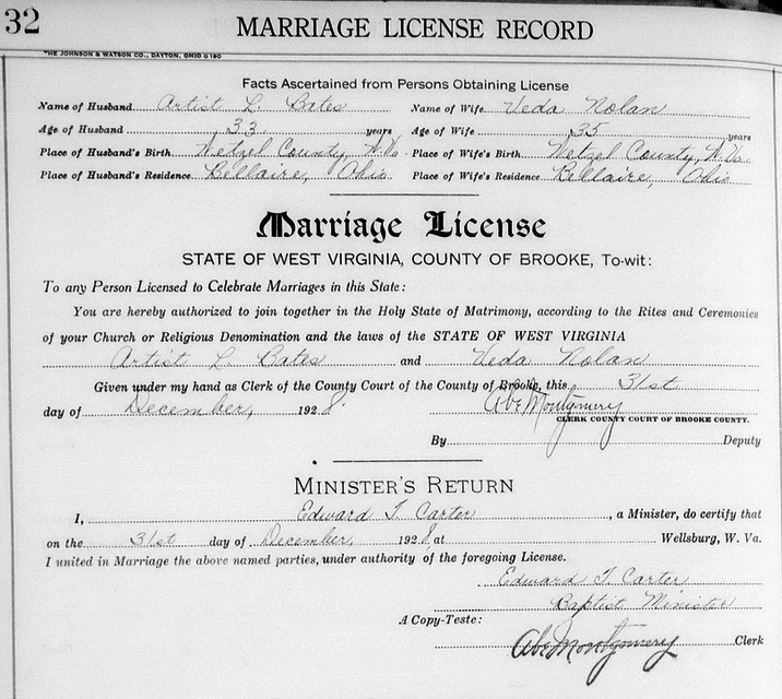 Jul-28-2018Husband: Artist Lee Bates Born: Jun- -1895 in Wetzel Co, WV 1,2 (see note 1) Died: Jul-22-1962 3,4 Buried: in Walker Cemetery, New Martinsville, Wetzel Co, WV 3 Resided: 1928 in Bellaire, Belmont Co, OH 5 Resided: 1919 in Folsom, Wetzel Co, WV 2 Census: 1900 in Grant District, Wetzel Co, WV Father: Frederick Lee Bates (1867 - 1934) Mother: Laverna Young (1870 - 1940) Other spouse 2