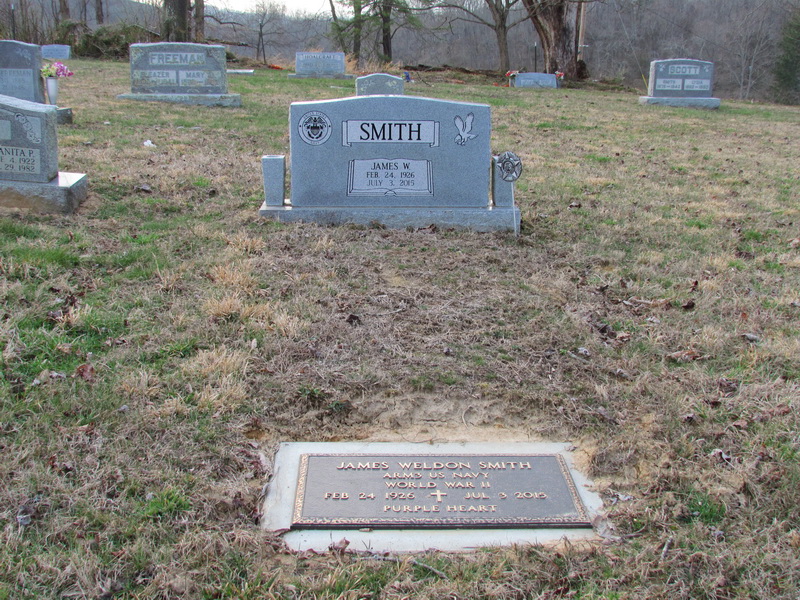 M Child 2: William E. Smith Census name: Billie E. Smith Born: Apr-18-1924 in West Union, Doddridge Co, WV 7 Died: Jan- 3-1998 Buried: in Freeman-Coleman Cemetery, Rt 18 N (Crystal Lake), West Union, WV 4 Census: 1940 at Rock Run (West Union), Doddridge Co, WV Census: 1930 in West Union District, Doddridge Co, WV Military: Aug-19-1941 - Dec-19-1945 S1, US Navy, World War II 14,15 Military: Oct- 6-1953 - Dec- 9-1953 US Air Force 14 Wife: Juanita P. ___ b. Jun- 4-1922 d. Dec-29-1982M Child 3: James Weldon Smith Born: Feb-24-1926 in West Union District, Doddridge Co, WV 7,10 Died: Jul- 3-2015 10 Buried: in Freeman-Coleman Cemetery, Rt 18 N (Crystal Lake), West Union, WV 4 Resided: in Newport, Washington Co, OH 12,16 Census: 1940 at Rock Run (West Union), Doddridge Co, WV Census: 1930 in West Union District, Doddridge Co, WV Education: Doddridge Co H.S. (1942) Occupation: proprietor of Gulf/Chevron service station in St. Marys WV 12 Military: ARM3, US Navy, World War II (Purple Heart) 4