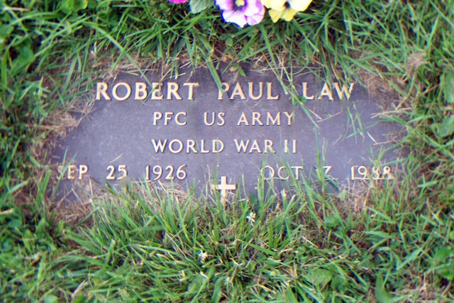 Jul-28-2018Husband: Robert Paul Martin Law Also known as: Paul Law 1 Born: Sep-25-1926 in New Milton District, Doddridge Co, WV 2,3 Died: Oct- 7-1988 in Hillsborough Co, FL 4,5,6 Buried: in K of P Memorial Park Cemetery, Salem, Harrison Co, WV 7 Resided: (six months) in Tampa, Hillsborough Co, FL 5 Resided: in Bloomingdale, Jefferson Co, OH 8,5 Census: 1930, 1940 in Greenbrier District, Doddridge Co, WV Occupation: steel worker 5 Military: Jul-11-1945 - Dec-30-1946 PFC, US Army, World War II 9,10,11 Father: John Barka Law (1894 - 1973) Mother: Dessie Luia Martin (1904 - ) Other spouse 2