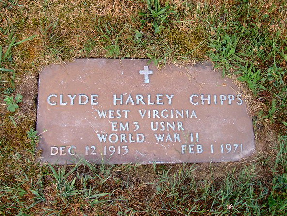 Jul-28-2018Husband: Clyde Harley Chipps Born: Dec-12-1913 in Harrison Co, WV 1,2 Died: Feb- 1-1971 in Harrison Co, WV Buried: in Coplin Church Cemetery, Jarvisville, Harrison Co, WV 3 Census: 1940 in Tenmile District, Harrison Co, WV Resided: 1933 at Wolf Summit, Harrison Co, WV 2 Census: 1920, 1930 in Tenmile District, Harrison Co, WV Occupation: 1940 truck driver (timber) 4 Military: EM3, US Navy, World War II 5 Father: George Harlen "Harley" Chipps (1886 - 1950) Mother: Sylvia Belle McKinney (1892 - 1961)