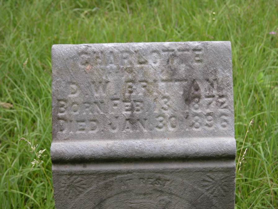 Wife: Sarah Charlotte Wade 5,7,8 Also known as: Charlotte Wade 9,10 Married: Mar-17-1895 in Doddridge Co, WV 11 Born: Feb-13-1872 in Ritchie Co, WV 12,10 Died: Jan-30-1896 at Summers, Doddridge Co, WV 13,10 Buried: in Gaston-Hart Cemetery, Upper Run, Summers, Doddridge Co, WV 10 Cause of death: "childbed fever" (puerperal fever, a bacterial infection caused by unsanitary childbirth conditions) 14 Father: Andrew Montgomery Wade (1847 - 1904) Mother: Sudna Jane Watson (1854 - 1875)