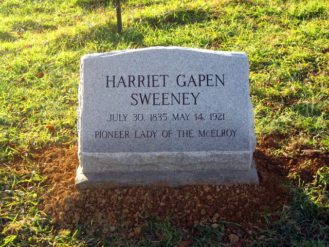 Wife: Harriet Gapen Marriage Bond: Mar- 3-1856 in Tyler Co, (W)VA 5 Married: Mar- -1856 5 Born: Jul-30-1835 6,7 Died: May-14-1921 6 Buried: in County Poor Farm Cemetery, Sunnyside, Doddridge Co, WV 6 Census: 1870, 1900, 1910 in McClellan District, Doddridge Co, WV Census: 1860 in Doddridge Co, (W)VA Census: 1850 in Tyler Co, (W)VA Father: John Gapen (1809 - 1865) Mother: Matilda Garlow (1810 - 1888) Other spouse 2 Other spouse 3