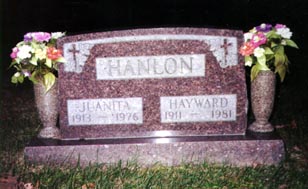 Jul-28-2018Husband: Denton Hayward Hanlon Also known as: Hayward Hanlon 1,2 Born: May-26-1911 3,4 Died: Jan- -1981 3,4 Buried: in Wince Chapel Cemetery, Pike, Ritchie Co, WV 1 Resided: in Williamstown, Wood Co, WV 5 Father: Mother:
