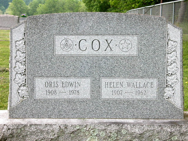 Jul-28-2018Husband: Oris Edwin Cox Born: Mar- 3-1908 in Double Camp, Doddridge Co, WV 1,2,3 Died: May-17-1978 in Clarksburg, Harrison Co, WV 1,2,3 Buried: in Masonic Memorial Park Cemetery, Crystal Lake (West Union), WV 1,4,5 Resided: in Salem, WV Census: 1910, 1930 in Greenbrier District, Doddridge Co, WV Occupation: West Virginia State Police (retired) 1 Occupation: formerly teacher at Doddridge Co H.S. 6 Education: East Side Fairmont H.S., Fairmont State Teachers College 6 Military: World War II 1,2 Father: James Dallas Cox (1881 - 1969) Mother: Tincie Mariah McClain (1887 - 1926) Other spouse 1