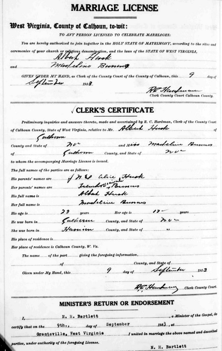 Wife: Geneva Ellen Bennett Married: Dec-7-1940 in Grantsville, Calhoun Co, WV 3