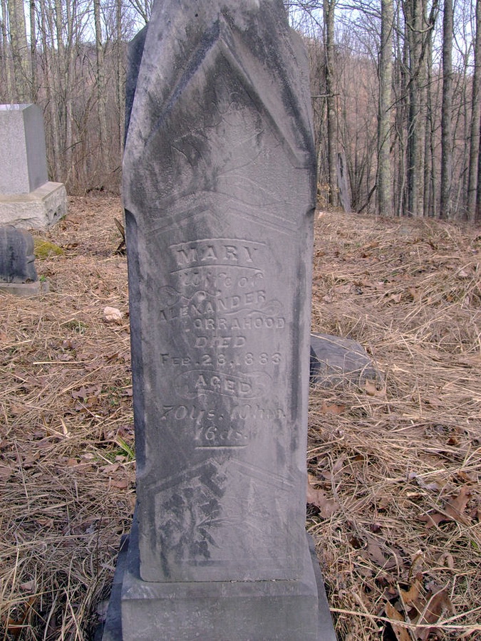 Sources: (1) Headstone. (2) Doddridge County Marriage Records, West Union, WV. (3) Donald Edward Ramage, Doddridge County Cemeteries, Vol. II, 4117 Almaville Rd, Smyna TN 37167 (1988, rev. 1999) (4) 1860 Census, Doddridge County, (W)VA. (5) West Virginia Marriages Index, 1785-1971 [database on-line], Ancestry.com. (6) Headstone - Date calculated from age at death, 70y 10m 16d. (7) Findagrave.com. (8) Doddridge County WV Marriages 1845-1937, Wes Cochran, 156 Gihon Meadows, Apt 150, Parkersburg, WV 26101 (Jan 1993) (9) Obituary of sister. (10) Obituary. (11) Doddridge County WV Deaths 1853-1969, Wes Cochran, 156 Gihon Meadows, Apt 150, Parkersburg, WV 26101. (12) West Union WV Cemeteries (Doddridge County), Wes Cochran, 2515 10th Ave, Parkersburg, WV 26101 (July 1990) (13) Findagrave.com, Name on headstone (flat marker): Sarah O. Leggett 1833-1918. (14) 1890 Veterans Schedules [database online], Ancestry.com and National Archives & Records Administration. (15) Doddridge County Marriage Records, West Union, WV, Identified as David M. Leggett, widowed, 33, farmer, b. Monongalia Co, res. Doddridge Co, son of Isaac & Jane Leggett; and Sarah Orrahood, single, 32, b. Hardy Co, res. Doddridge Co, dau of Alexander & Polly Orrahood. Married Nov 22 1863 in Doddridge County, officiated by Eli M. Gaston. NOTE: Wife's obituary incorrectly states marriage date as Nov 27 1863. MR Bk 1-A, p. 146, Line 2 : http://www.wvculture.org/vrr/va_view.aspx?Id=11791645&Type=Marriage. (16) Civil War Service Records,. (17) Ritchie County Historical Society (David M. Scott, Editor), Ritchie County, West Virginia Cemeteries through 1993, McClain Printing Co, Parsons, WV, 1995, headstone has birth date, but death date is blank, p. 322. (18) Doddridge County Marriage Records, West Union, WV, MR p. 148 : http://www.wvculture.org/vrr/va_view.aspx?Id=11791638&Type=Marriage. (19) Doddridge County Republican, 7/6/1916. (20) West Virginia Marriage Records, 1863-1900 (http://www.ancestry.com/search/rectype/inddbs/4484.htm) (21) 1850 Census, Doddridge County, (W)VA. (22) 1900 Census, Doddridge County, WV (Grant District) (23) 1880 Census, Harrison County, WV (Elk District) (24) Obituary, At his Nov 1912 marriage to Eva Dell Gaston, Henry Orrahood gave his age as 58, thus putting his birth at ca 1854. But his obit in the Feb 2 1939 issue of the West Union Herald gave his birthdate as Mar 12 1848, the same as his headstone. Birthplace obtained from marriage record. (25) Donald Edward Ramage, Doddridge County Cemeteries, Vol. I, 4117 Almaville Rd, Smyna TN 37167 (1988, rev. 1999) (26) Doddridge County WV Marriages 1845-1937, Wes Cochran, 156 Gihon Meadows, Apt 150, Parkersburg, WV 26101 (Jan 1993), Identified as Henry Orrahood, 21, of Doddridge Co, son of Alexander & Mary; and Mary E. Nutter, 20, b. Harrison Co, res. Doddridge Co, dau of Thomas & Lucinda. Married Apr 4 1869. (27) Marriage record of son. (28) Doddridge County Marriage Records, West Union, WV, Marriage is recorded in Doddridge Co even though it took place in Harrison Co. Both parties were listed as being residents of Doddridge Co. MR Bk 9, p. 105. (29) 1880 Census, Doddridge County, WV (New Milton District). Event Notes Note (1) Her obituary states that "funeral services were conducted at the M.P. church, Cabin Run" and that "interment was in the M.P. churchyard." But no headstone or grave marker for her is found at Cabin Run Cemetery. However, there is a headstone (flat marker) for her at Masonic Memorial Park, Crystal Lake (West Union), Doddrige County. The marker is inscribed: Sarah O. Leggett, 1833-1918. We were informed by her great-granddaughter, Carolyn Leggett Gaston, that Sarah's remains were removed from Cabin Run in the 1940s and reinterred in the Leggett plot at the Masonic Cemetery. Note (2) Birth date given in 1900 Census as Nov 1840, but headstone shows it as Feb 6 1840. Note (3) Birth date on headstone is Oct 24 1852. But she was in the 1850 Census, age 7 months. Name Index