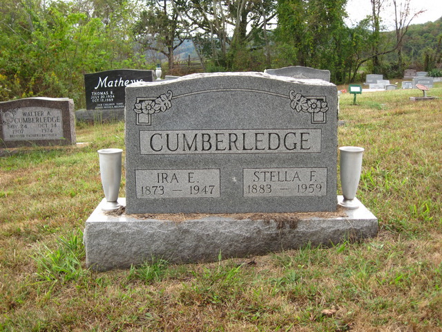 Jul-28-2018Husband: Ira Emerson Cumberledge Born: 1873 1 Died: 1947 1 Buried: in Mt. Olive Baptist Cemetery, Patterson Rd, Salem (Doddridge Co), WV 2 Census: 1940 in Greenbrier District, Doddridge Co, WV Census: 1930 in Coal District, Harrison Co, WV Census: 1920 in McElroy District, Tyler Co, WV 3 Census: 1910 in Court House District, Taylor Co, WV Father: Ellis Cumberledge (1846 - 1916) Mother: Elizabeth Ann "Betty" Smith (1854 - 1887)