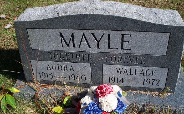 Jul-28-2018Husband: Wallace Delmas Mayle Born: Oct- 8-1914 in Ritchie Co, WV 1,2 Died: Jul-17-1972 1 Buried: in Wolverton (aka Powell or new Victory) Cemetery, Waldo Run, Doddridge Co, WV 3 Resided: 1934 in Doddridge Co, WV 2 Census: 1920, 1930 in Grant District, Doddridge Co, WV Military: Apr- 1-1944 - Sep-19-1945 S1, US Navy, WW II (escort carrier USS Core, CVE-13) 4 Father: Alpheus Stephen Mayle (1872 - 1958) Mother: Magdalyn Conisse "Maggie" Cummings (1878 - 1961)