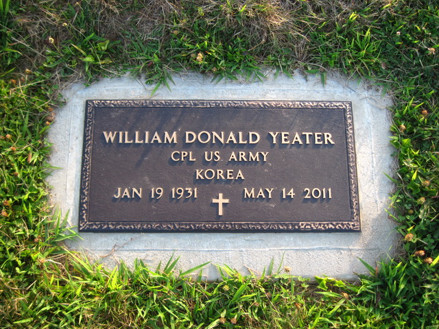 Jul-28-2018Husband: William Donald "Don" Yeater Also known as: Donald Yeater 1 Born: Jan-19-1931 2 Died: May-14-2011 in Pittsburgh, Allegheny Co, PA 3 Buried: in Masonic Memorial Park Cemetery, Crystal Lake (West Union), WV 4 Resided: in Wabash (West Union), Doddridge Co, WV 4,1 Census: 1940 in West Union District, Doddridge Co, WV Occupation: (42 yrs) owner/mgr, Markey Company, West Union WV 4,1 Military: Cpl, U.S. Army, Korean War 4 Father: Herman Yeater (1894 - 1979) Mother: Wilda Beryl Burton (1906 - 1987)