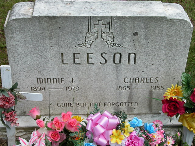 Sources: (1) Obituary. (2) W. Guy Tetrick files. (3) Obituary - At home. (4) Doddridge County WV Deaths 1853-1969, Wes Cochran, 156 Gihon Meadows, Apt 150, Parkersburg, WV 26101. (5) Headstone. (6) Obituary of sister. (7) Obituary of brother. (8) Doddridge County Marriage Records, West Union, WV, Identified as Charles Leeson, 49, b. & res. in Doddridge Co; and Minnie J. Gaston, age 21 as of Oct 24 1915, b. Ritchie Co, res. Doddridge Co. Married Nov 1 1915 "at the residence of the Bride" by John M. Gaston, a Minister of the Gospel. MR Bk 9, p. 445. (9) Obituary of husband. (10) Obituary of wife. (11) Doddridge County Marriage Records, West Union, WV. (12) Social Security Death Index. (13) 1900 Census, Doddridge County, WV (Southwest District) (14) Obituary of father. Event Notes Note (1) Obituary of Minnie Gaston Leeson states she was born Oct 24 1895 and died Oct 5 1979 at age 83, which is mathematically correct. But both her birth record and SSDI give her birth as Oct 24 1894, as does her marriage record and the Guy Tetrick family information sheet she filled out herself in 1931. Her obituary also incorrectly identifies her parents as Eliza (should be Eli) Gaston and Nancy (should be Cassa) Hart.Name Index
