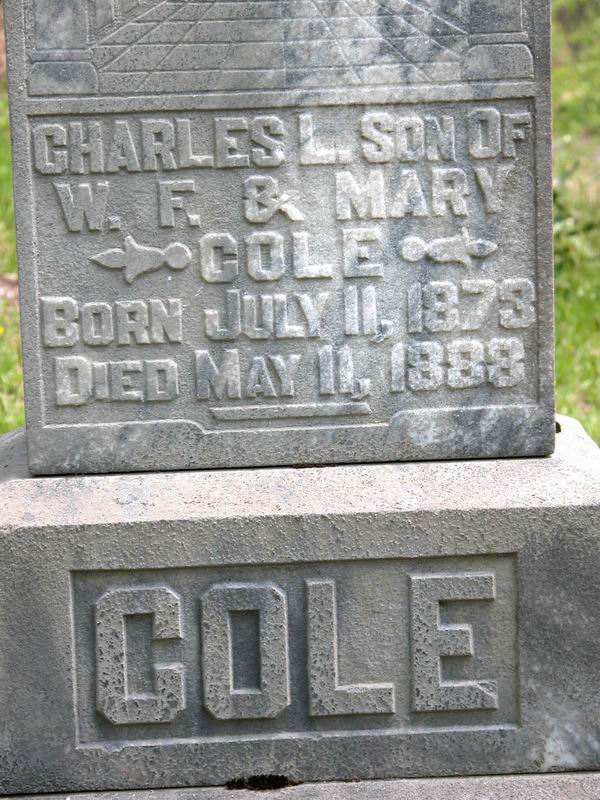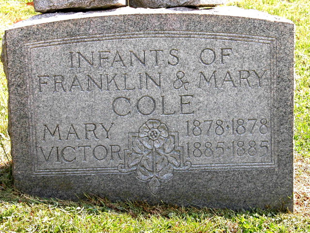 F Child 6: Mary Cole Born: 1878 3 Died: 1878 3 Buried: in Grove Baptist Church Cemetery, Grove-Summers Rd (CR 19), Doddridge Co, WV 3