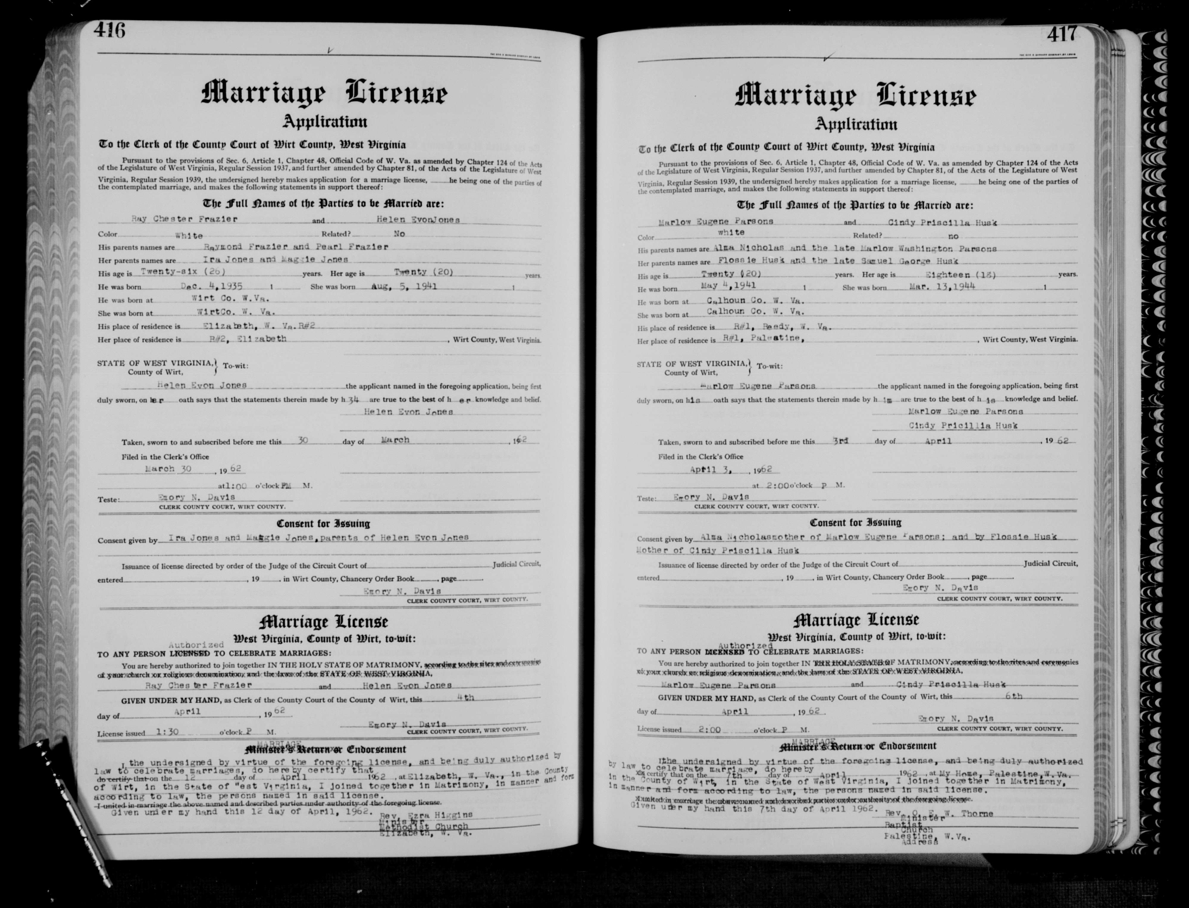 | Married | 7 Apr 1962 | Palestine, Wirt Co, WV |
