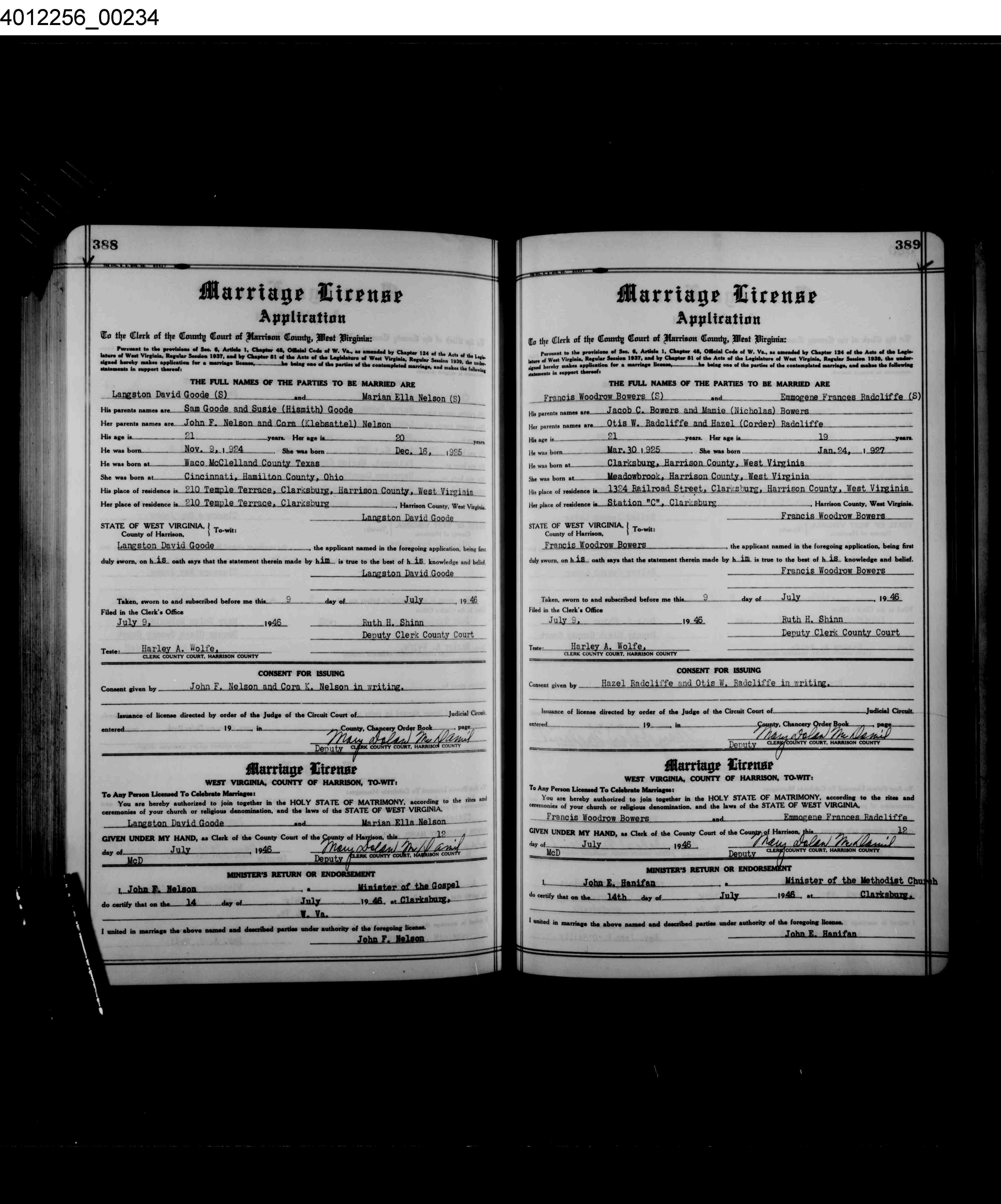 | Documents | 138530_FrancisWoodrowBowers_EmmogeneFrancesRadcliffe_MarriageRecord_14Jul1946.jpg | |||